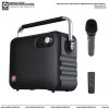 Taşınabilir Sistem, 5” Hoparlör, 30 W Çıkış Gücü, Kablosuz El Mikrofonu, USB/TF yuvası ve Bluetooth, Kayıt Özelliği, 1 Mic girişi, AC 100-240V/50-60 Hz, 12V 3AH Şarjlı Pil, Uzaktan kumanda ve Kemer taşıma aparatı Dahil.